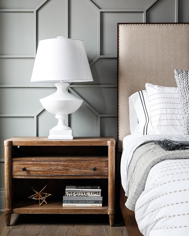 Bedroom detail. Can't imagine how long it took to layout and devise that trimmed wall. Looks so good! ...